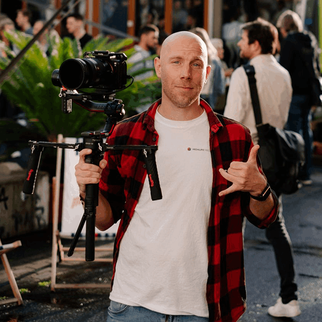 Der zweite im Boot: Adrian Bruce. Hamburger Jung: Nach dem Zivildienst studierte Adrian Angewandte Medienwirtschaft und sammelte praktische Erfahrung bei einem Internship bei NBC in New York City. Danach war er über 10 Jahre als selbstständiger Kameramann und Cutter aktiv.